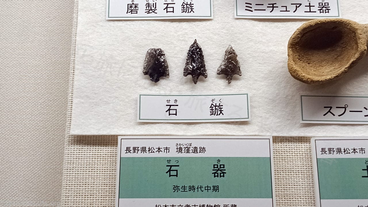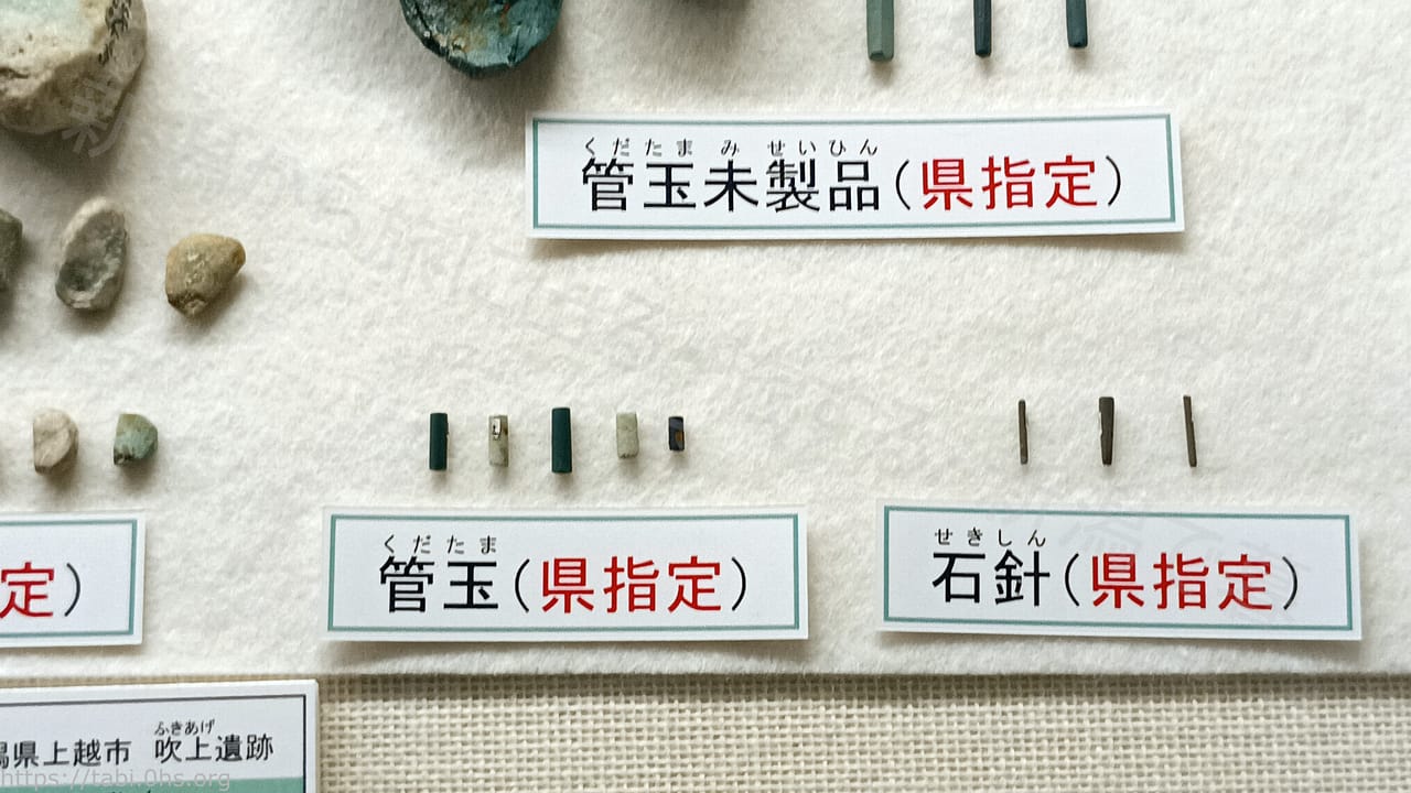 ヒスイ等のペンダントや矢じりの展示なんかがされていたよ。