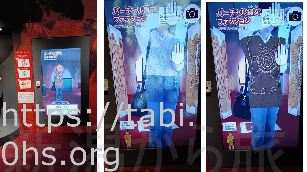 十日町市博物館では、「縄文ファッションバーチャル体験」という、縄文の服を着てみることができる装置がある。